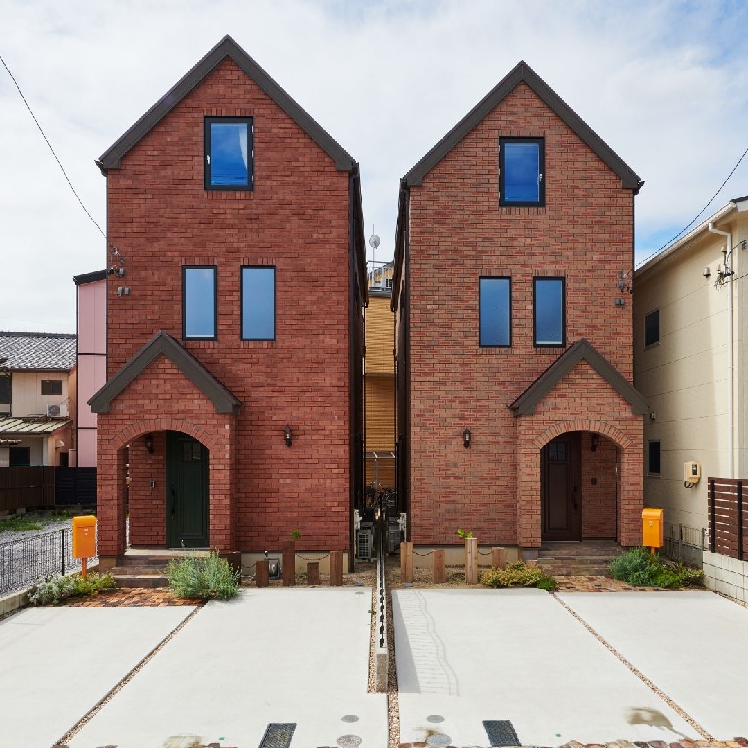 窯業系サイディングをベースにタイル、レンガを採用し重厚感を演出。
