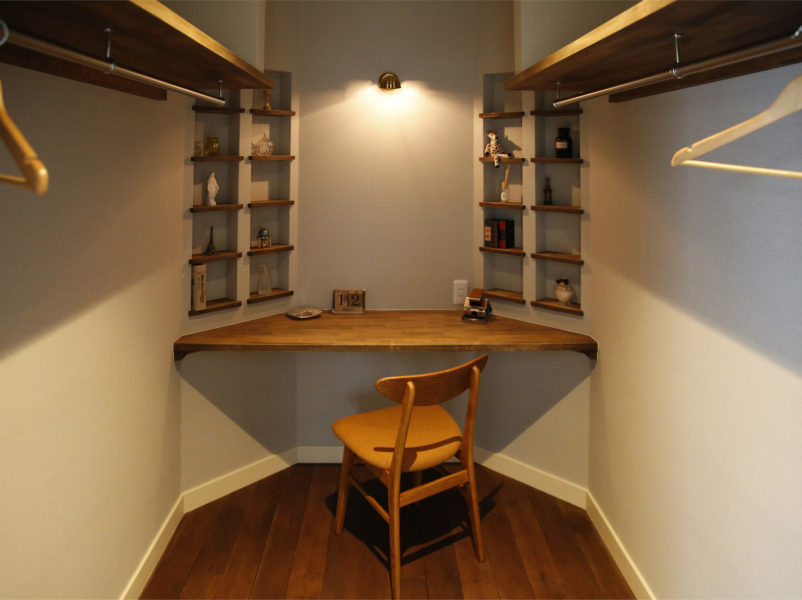 クローゼットの中に隠れ家的な書斎をプランしました。