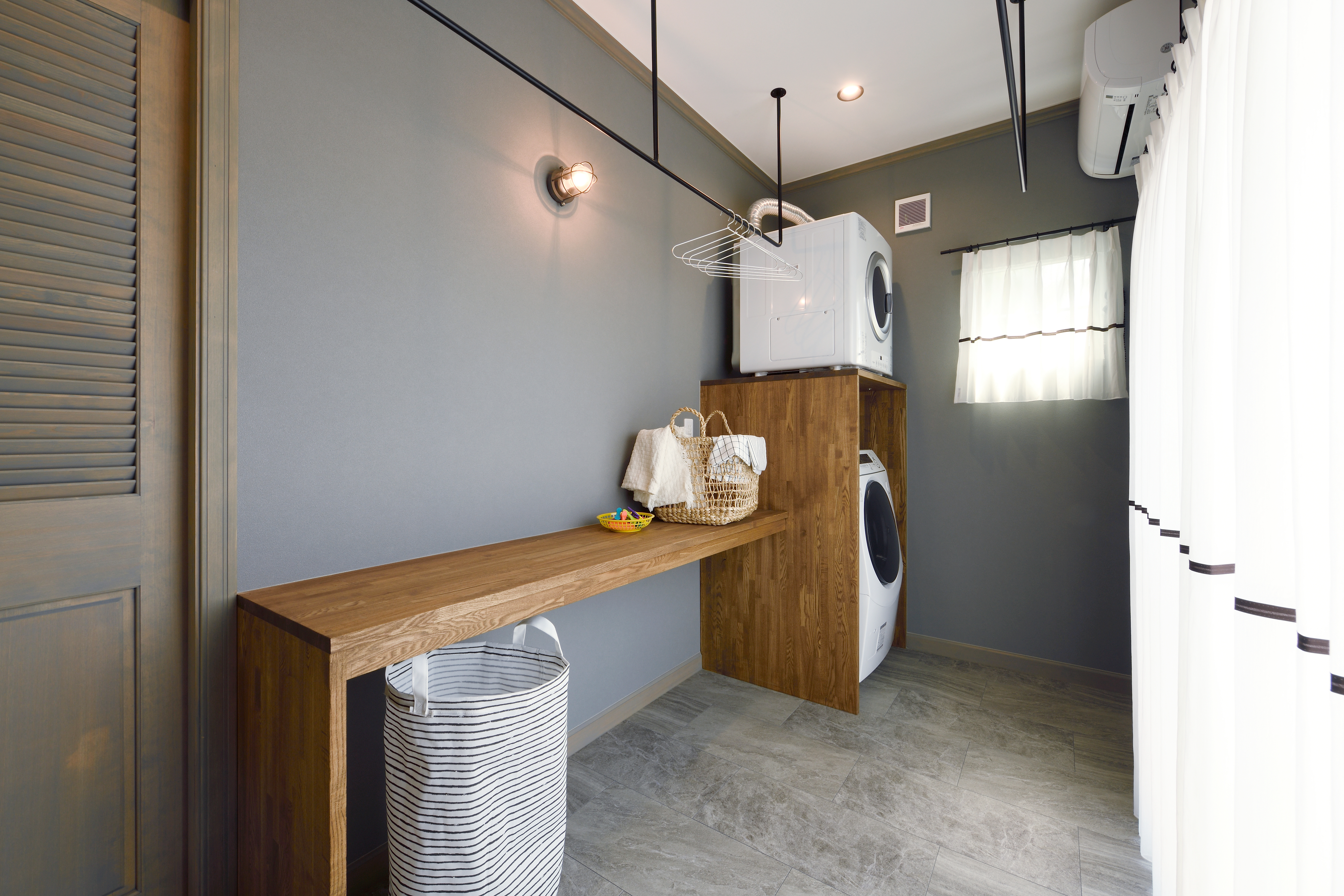 ランドリールームを設置すると、洗濯の一連の作業を一カ所で完結できるので家事動線がスムーズになり、家事の負担が軽減できて時短にもなります。天候に左右されず、いつでも好きな時間に洗濯できます。外からの目を気にする心配もありません。