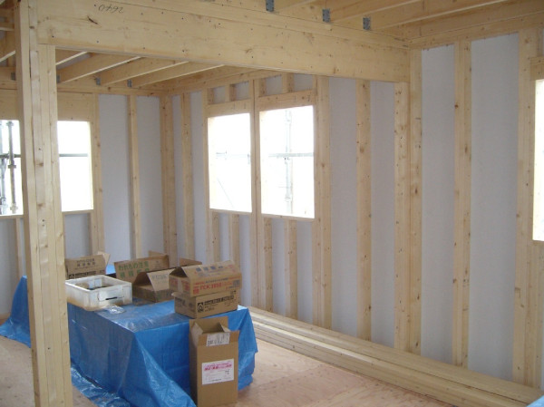 す!!2インチ×4インチの構造製材(柱)に構造用面材(壁)を打ち付けた工法で、柱で