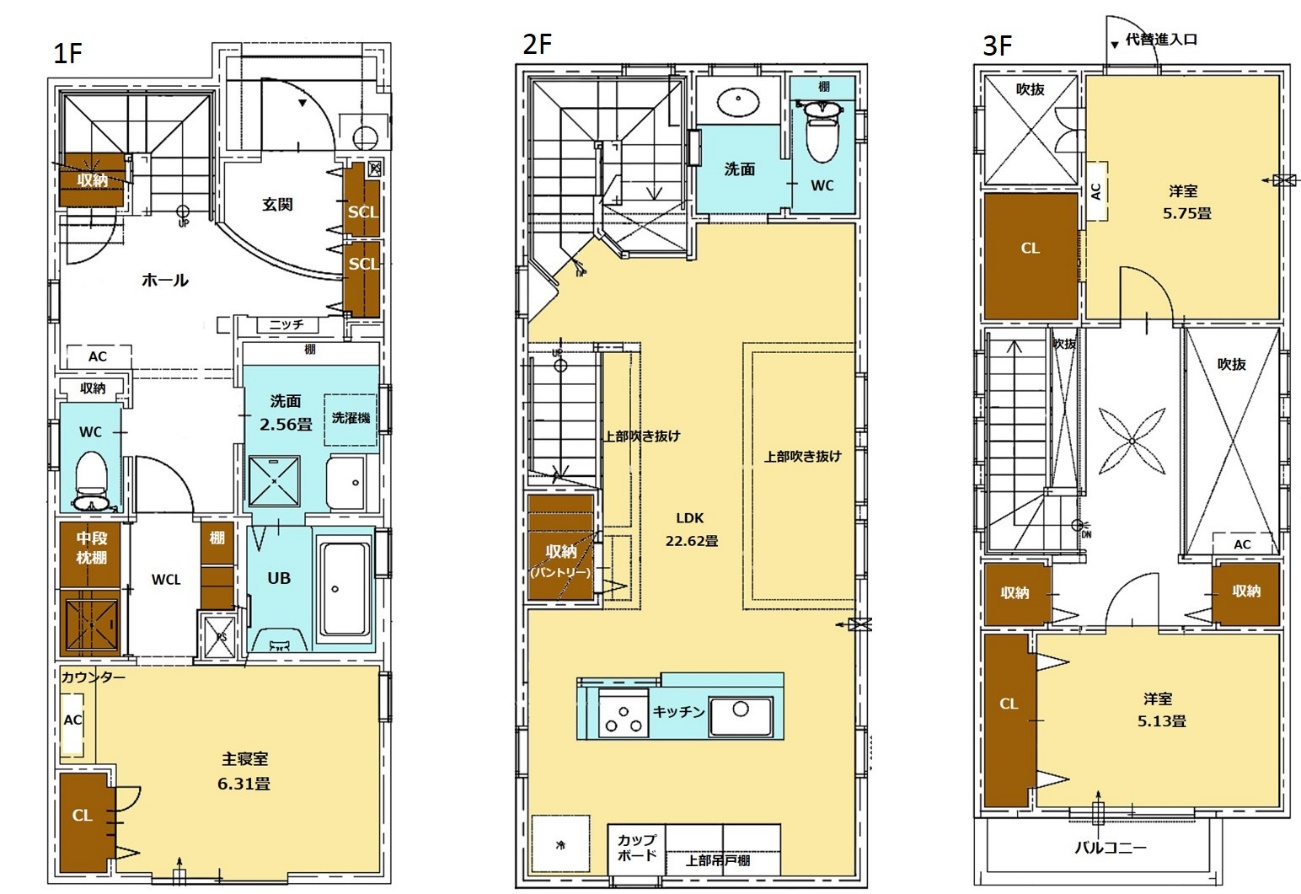 3階建てなので、LDKや主寝室、居室など一つひとつ広い空間を確保。中に入ると、