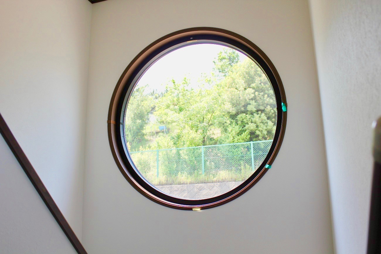 前回ご紹介した外観のアクセントとなっている大きな丸窓。中から見るとこんな感じです。