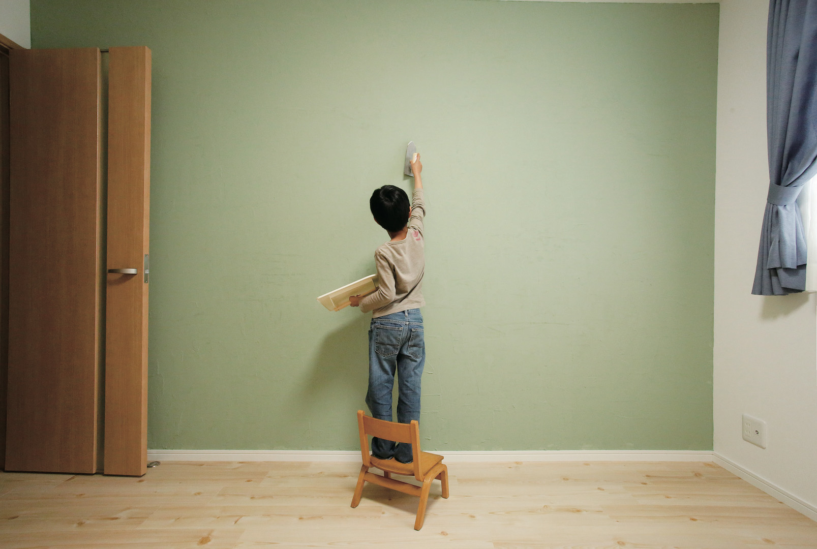 自分たちが選んだ緑色の塗り壁を、力を合わせて、活き活きと塗られていた姿が印象的でした。