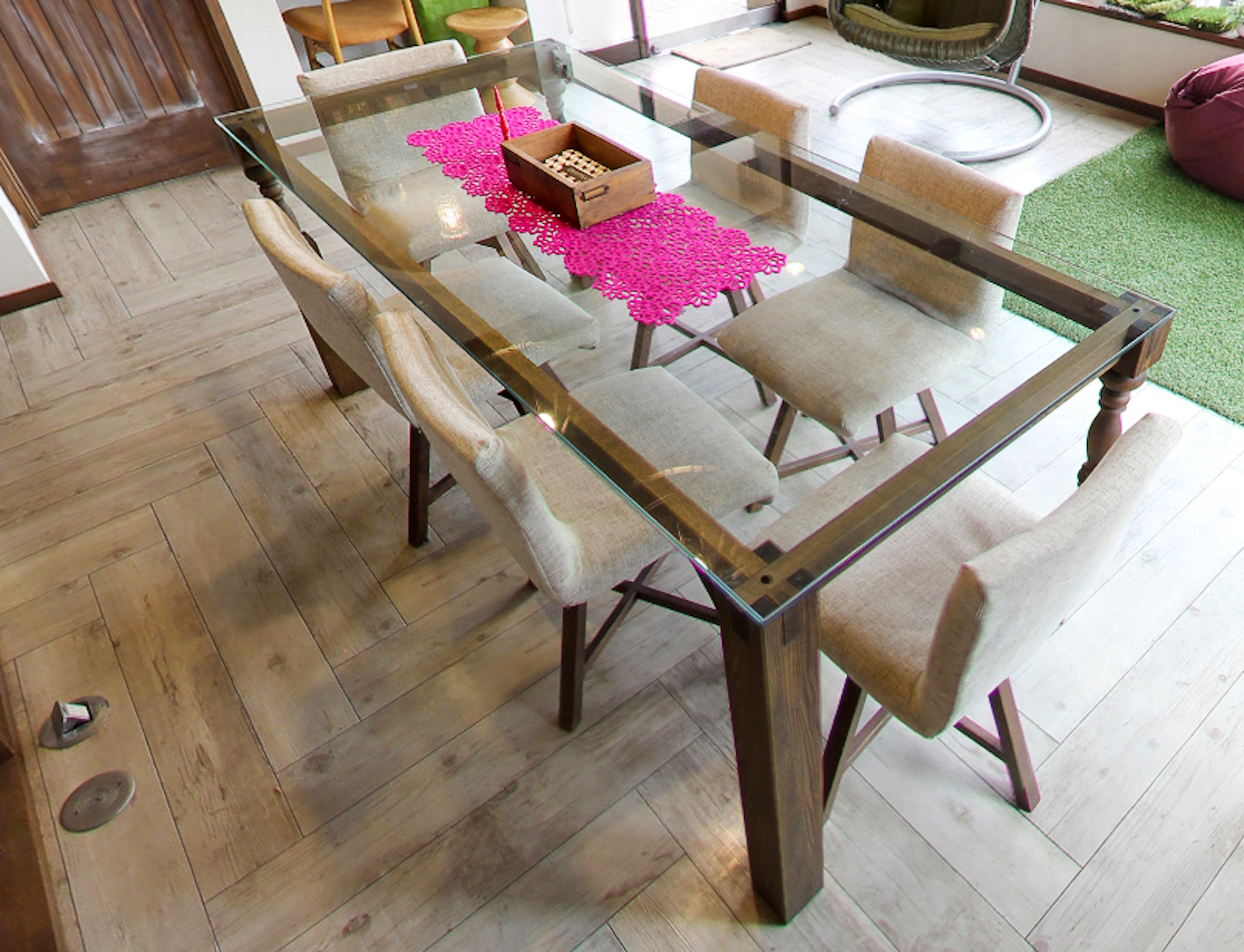 ヘリンボーン貼りという、非常に手間隙がかかる工法を採用しているのですが、