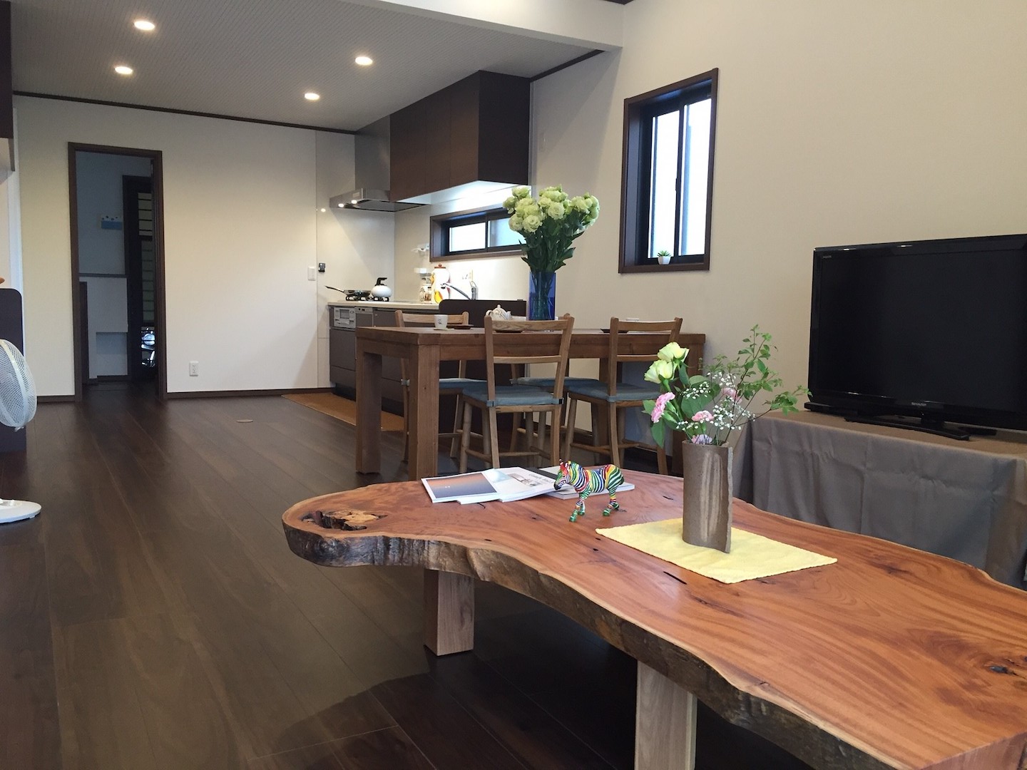 予算オーバーですが、床暖対応の無垢材にすればよかったかな。