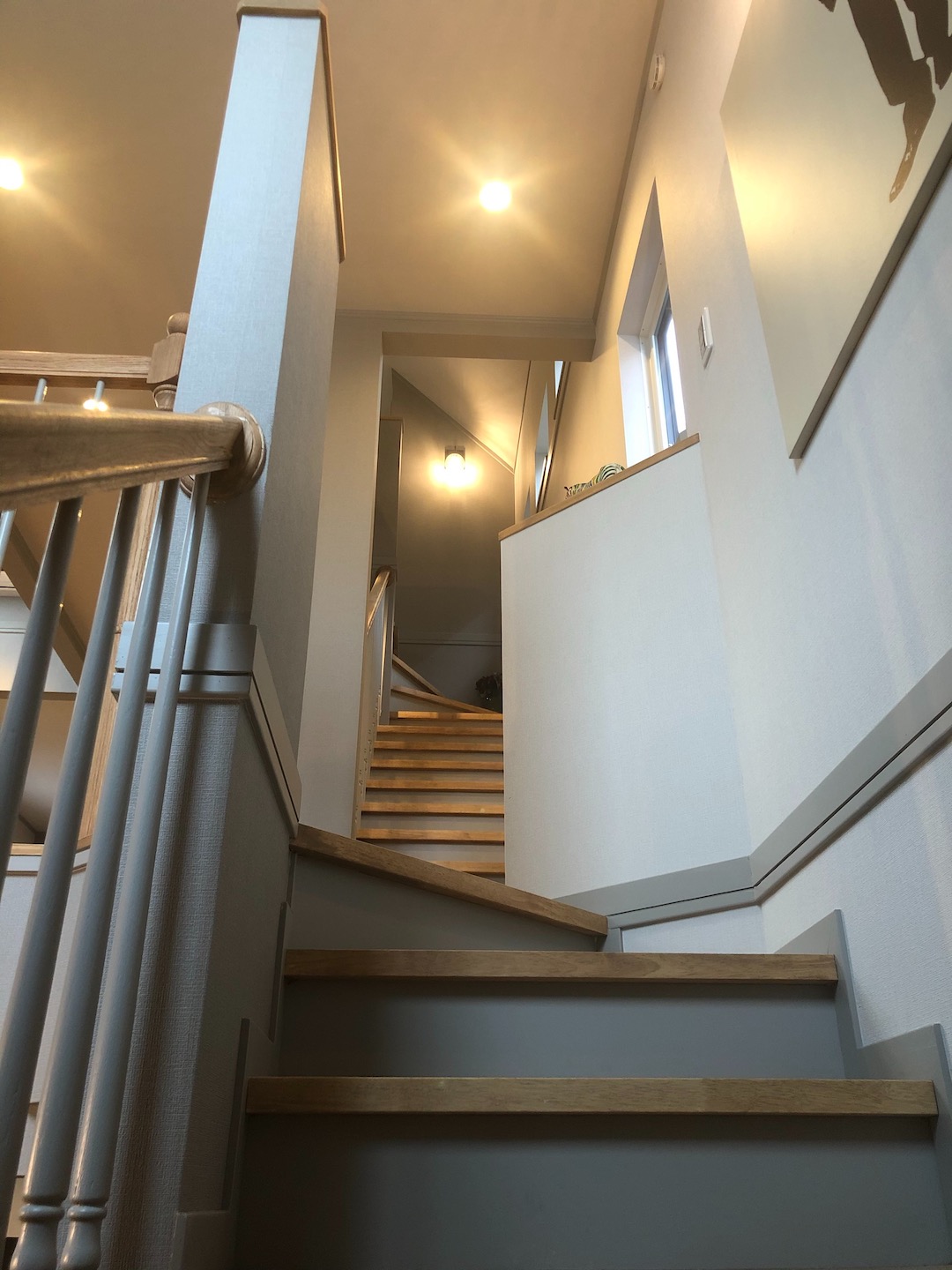 3階階段から1階階段までの間にストッパーを兼ねた飾り棚が設置されていたり、