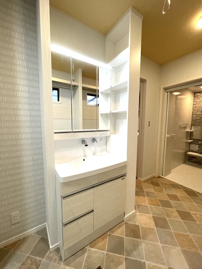 洗面所は広めにとり、ランドリールームとしても使用可能。