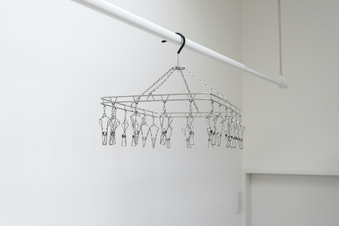 外で干すと鉄粉や花粉が気になるため、ランドリールームや室内干しスペース、