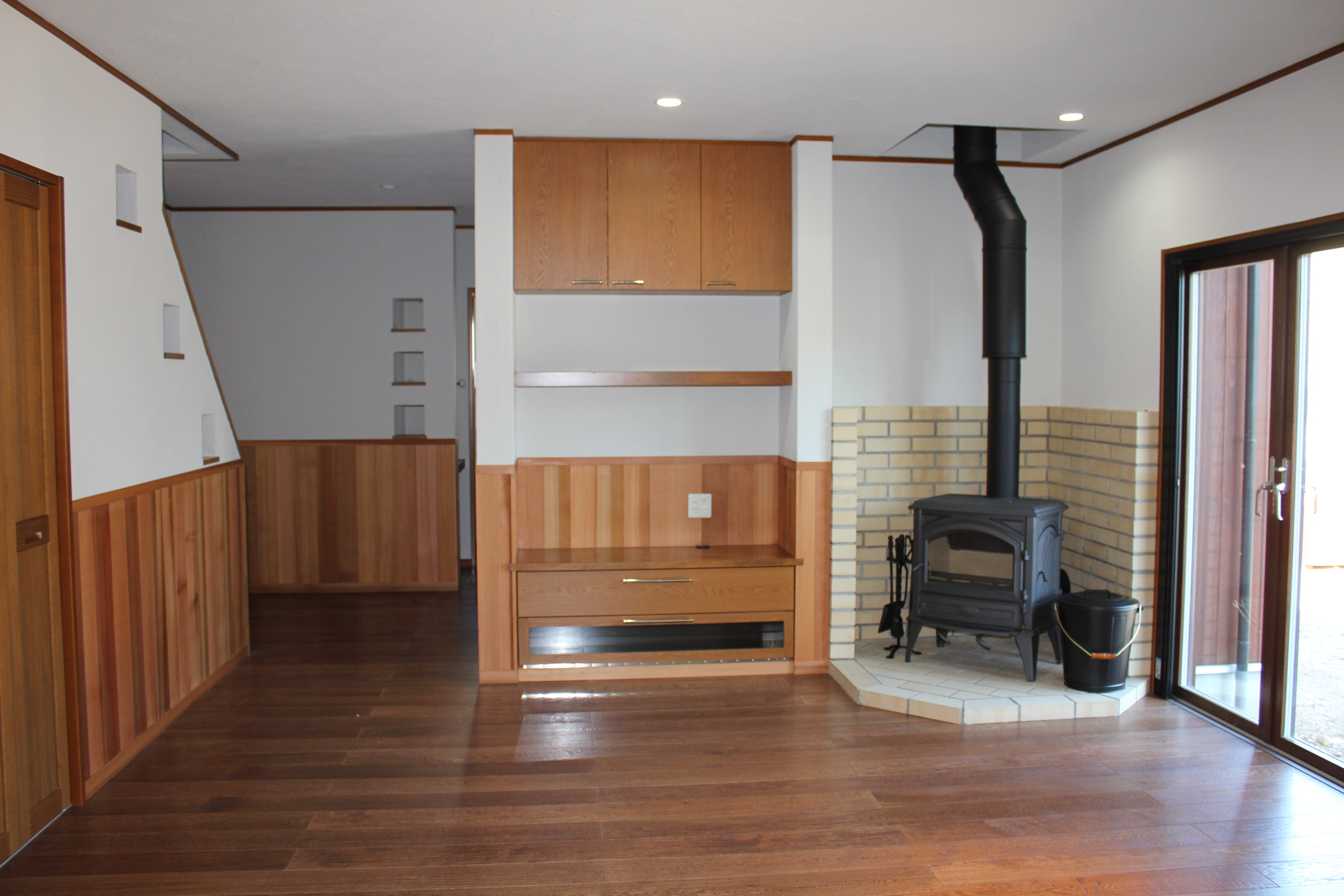自然素材をふんだんに使用したリビングには、薪ストーブがぴったり。