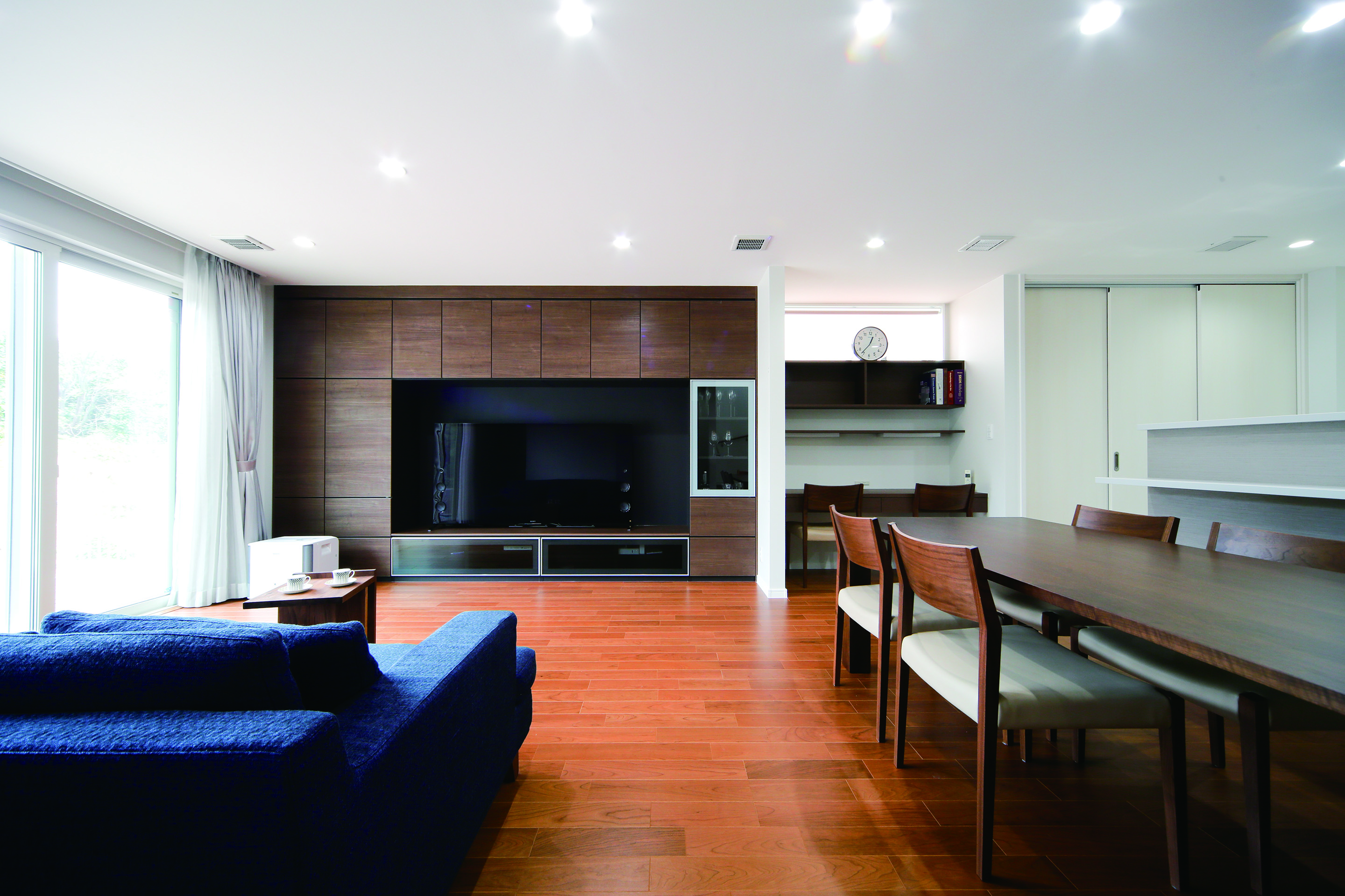 白×木目で統一されたリビング。