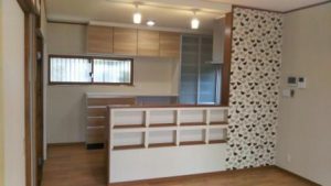 先々回にご紹介しました、キッチン腰壁を利用した食堂側本棚です。