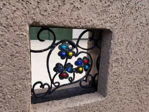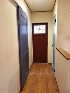 ステンドグラスや、内装ドアも色んな色使いで設置。