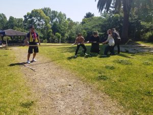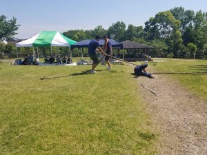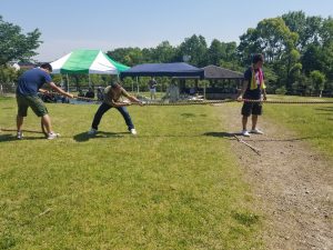 清水さんは一気に引っ張られ、ひっくり返ってました。