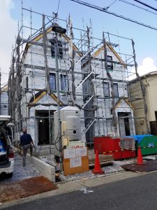 毎日暑い中、大工さん頑張って工事を行ってます。