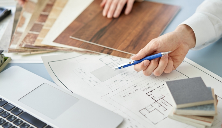 設計図面のご確認や、壁や床などの素材・色決めを行います。