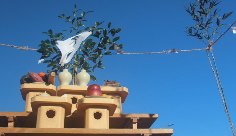 いよいよ工事開始です。工事開始前に、土地の神様を祀る地鎮祭を行い、工事の安全を祈願します。