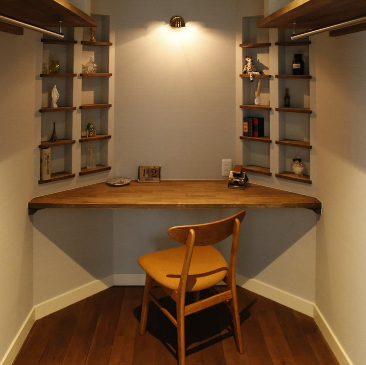 カウンターを設置することで、書斎としてプライベートな時間を過ごせるスペースに。収納を増やしたいときは、ウォークインクローゼットとしてもお使いいただけます。