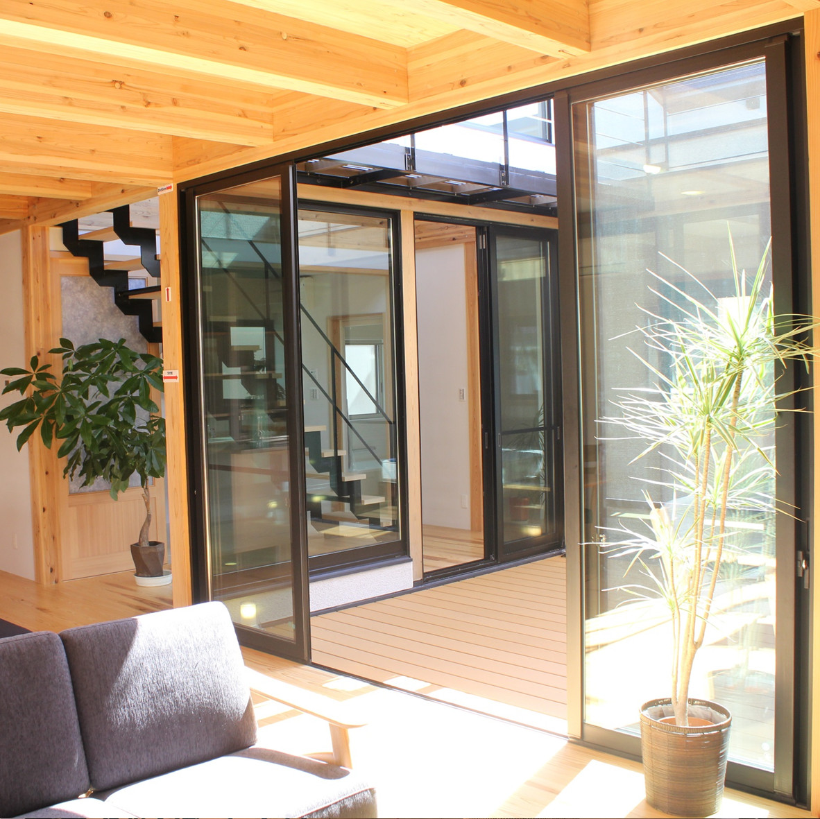 家の中心に「光の庭」があり、高窓とともに、もっとも光の入りにくい部屋にも陽ざしを呼んでくれるため、1日を通して多くの部屋に光があふれます。古民家から学んださまざまな知恵をと心を取り入れながら先進技術によって、大切な住まいを造ります。
