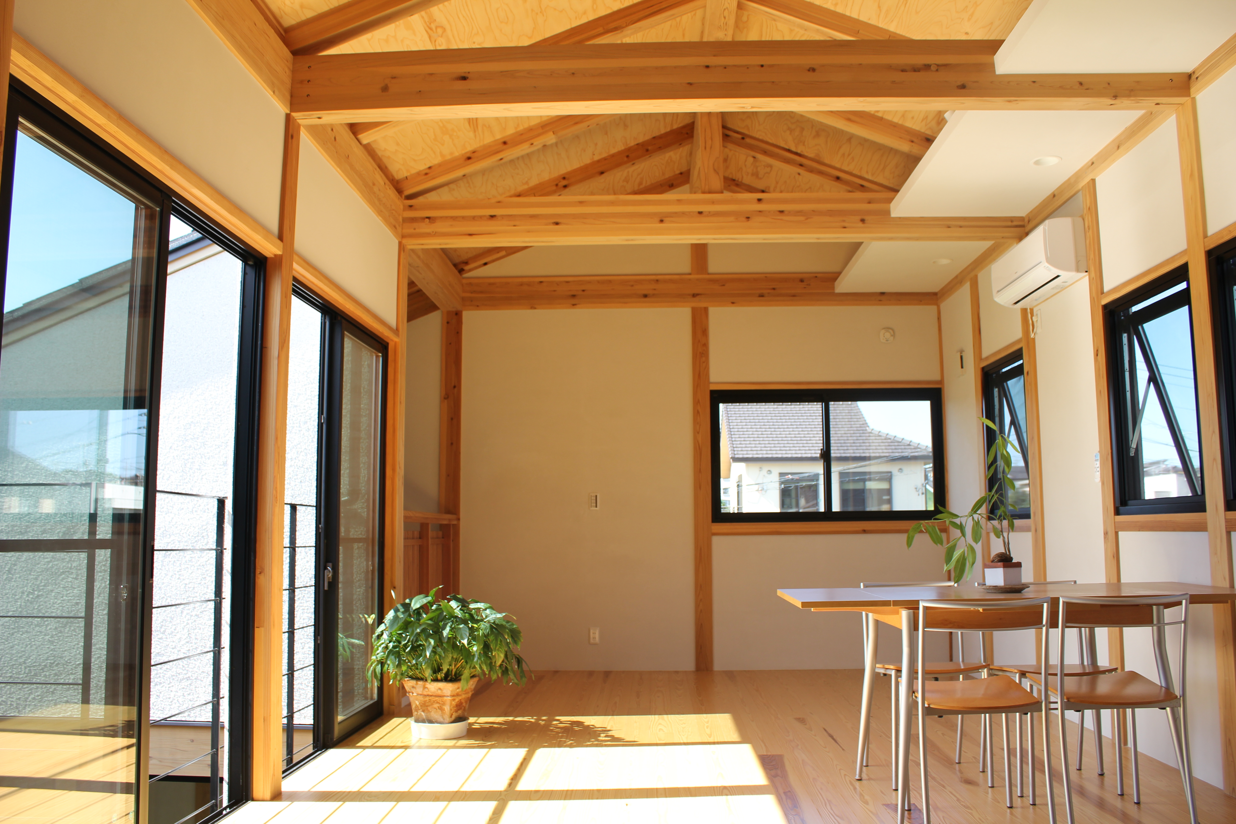 古民家を訪れると、雨の多い日本の風土に合わせた屋根は急勾配になっています。次第に失われつつあるそんな景色を、HABITAで再現しています。寝ころんで木目を眺めながら考えごとをする、そんな暮らしをしてみませんか?