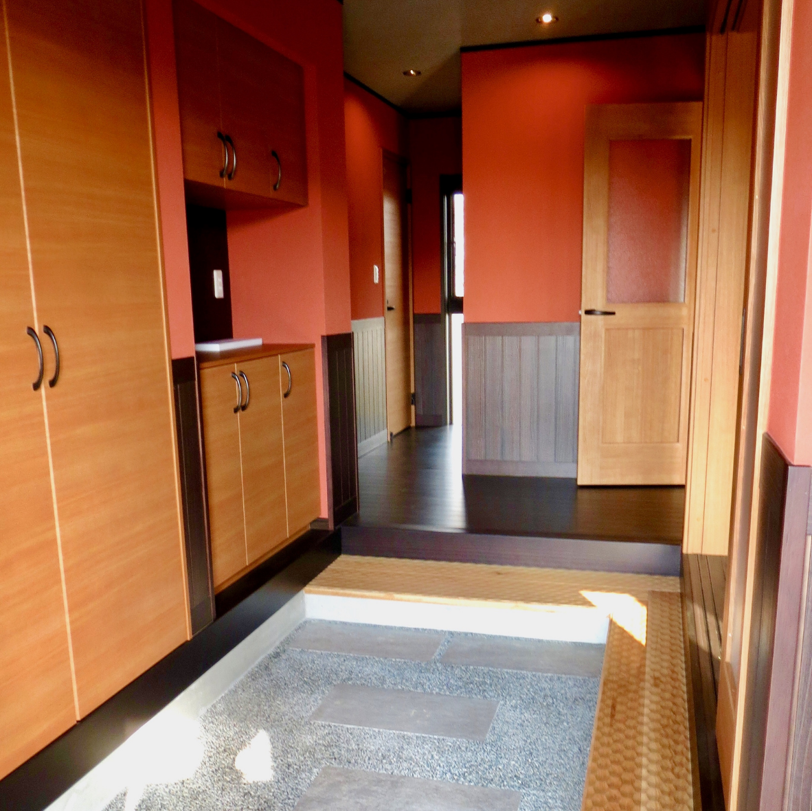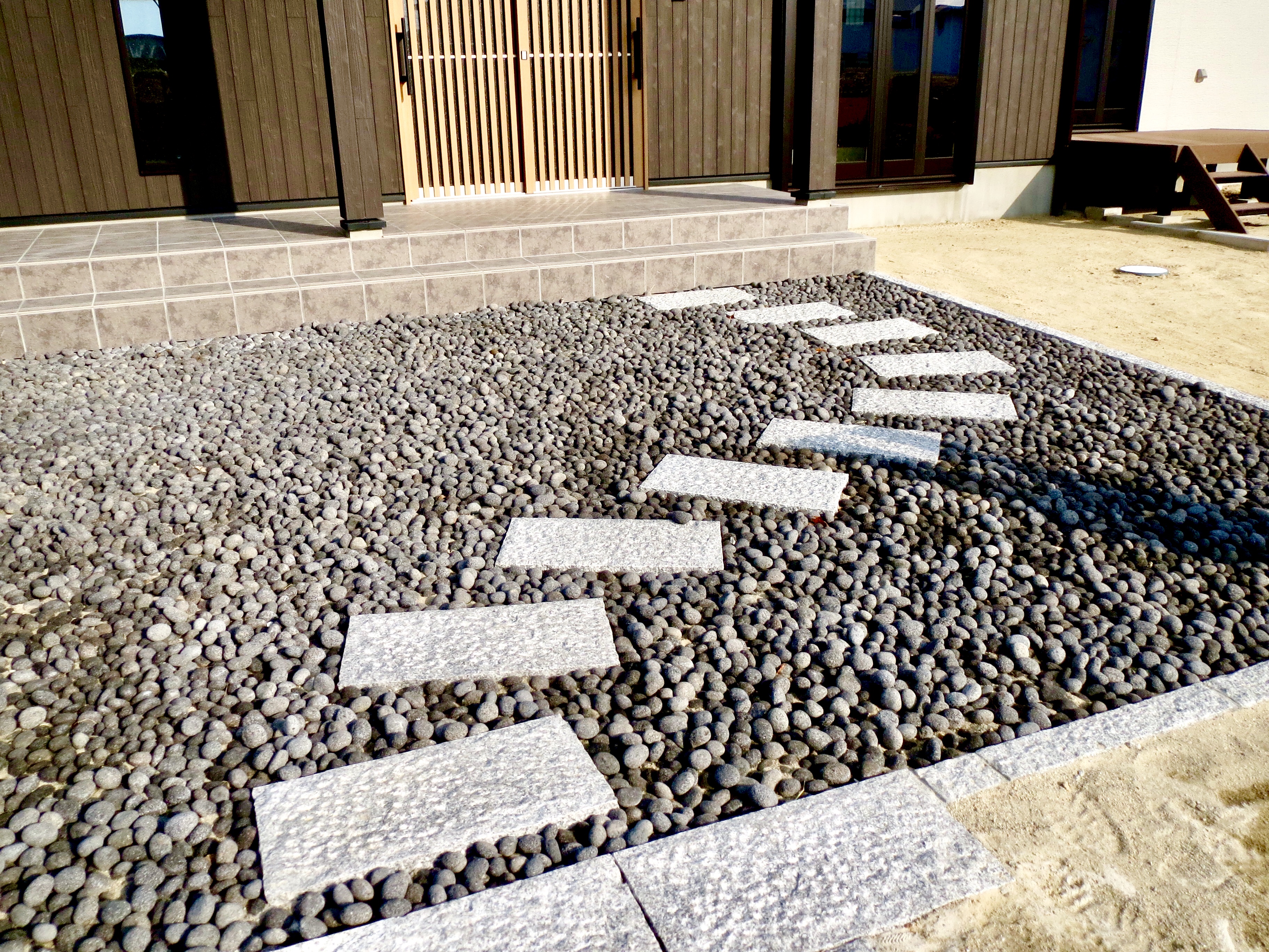 玄関は那智石を敷き詰めた土間に。