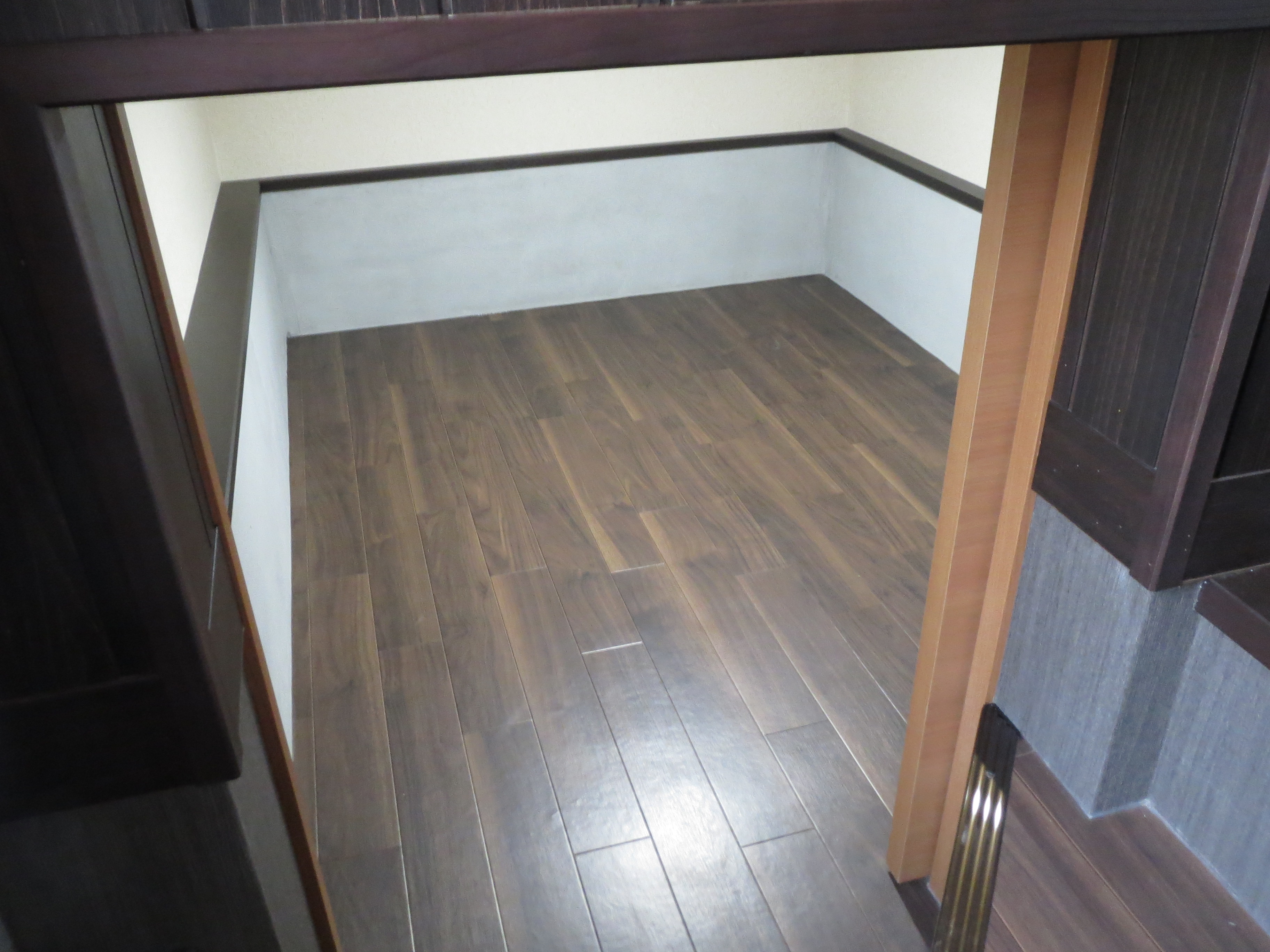 階段を3段ほど降りていく収納スペースはまるで秘密基地!