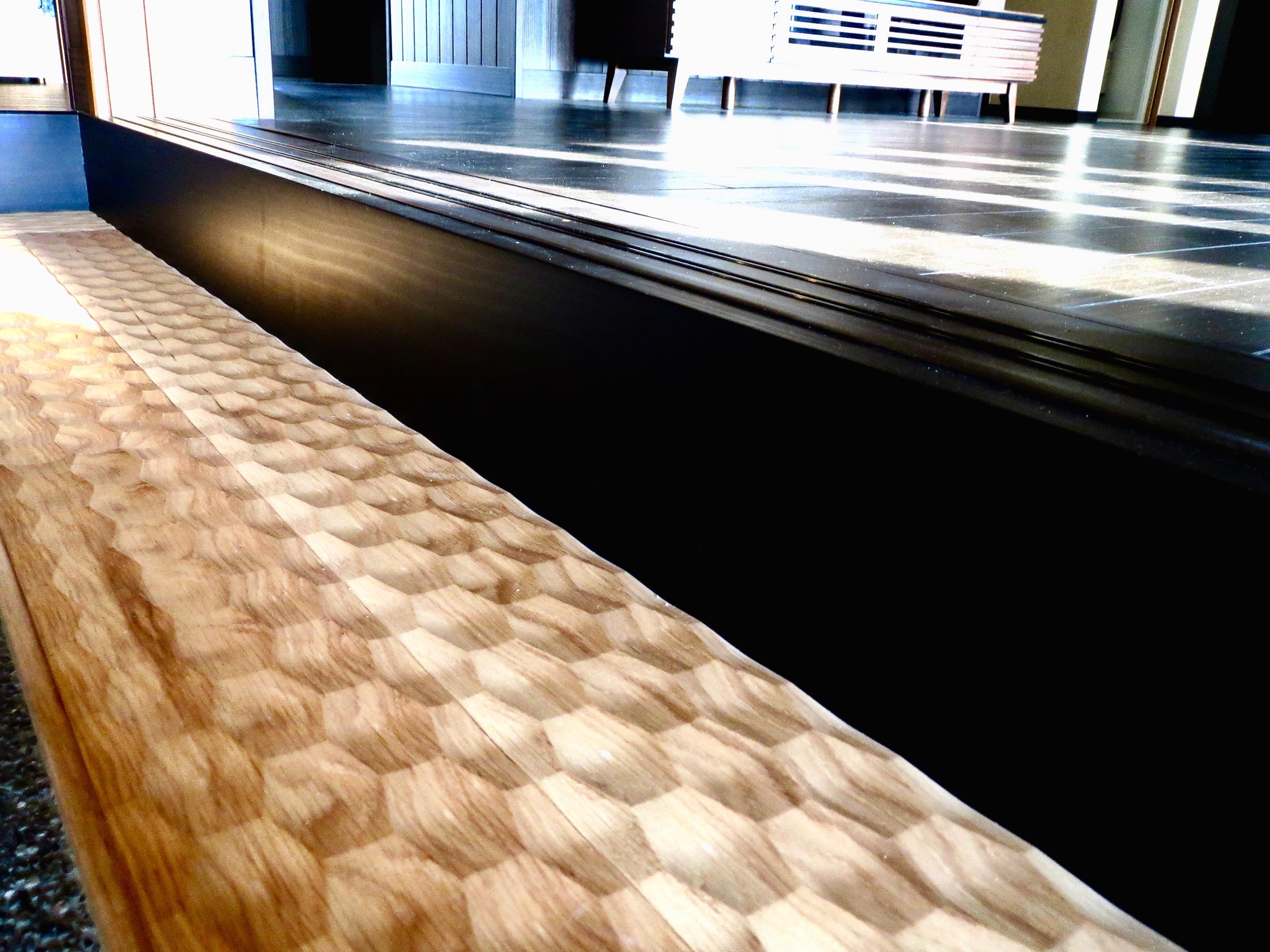 式台には躍動感のある「なぐり加工」を施工しました。