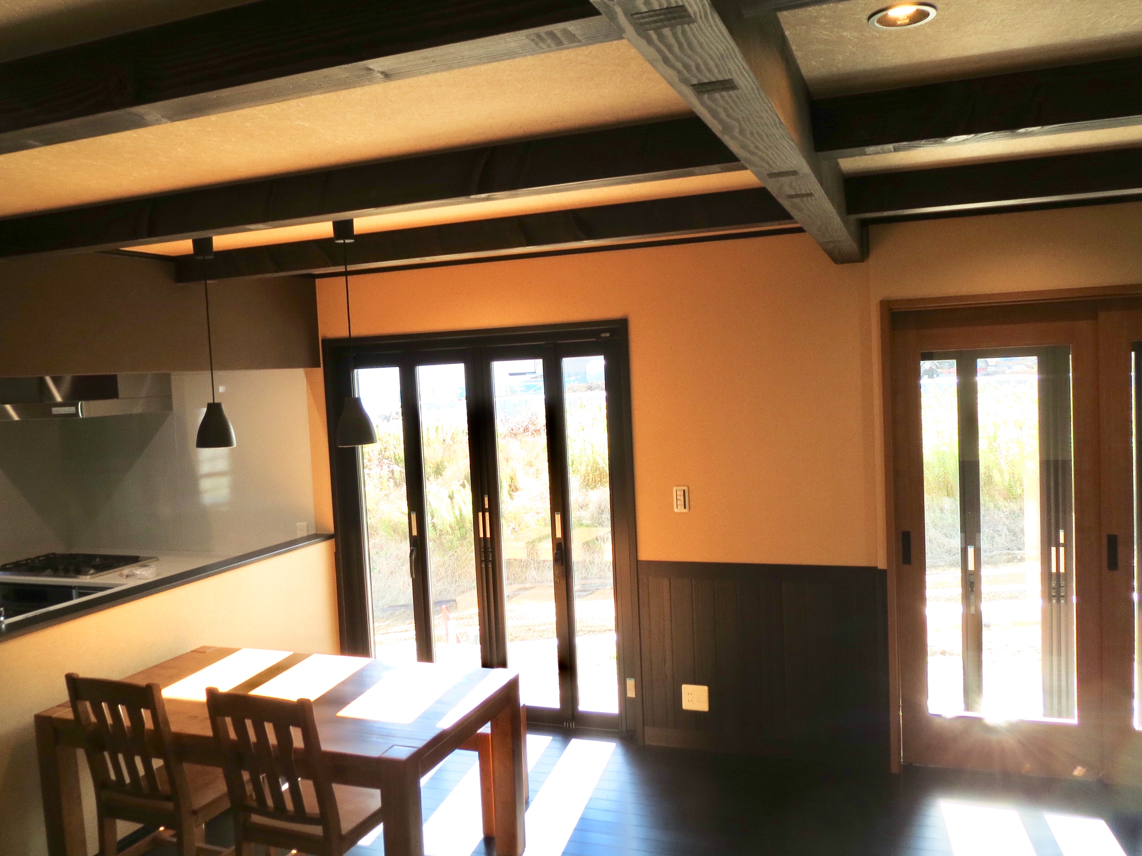 天井には古民家を思わすような付梁を施してあります。