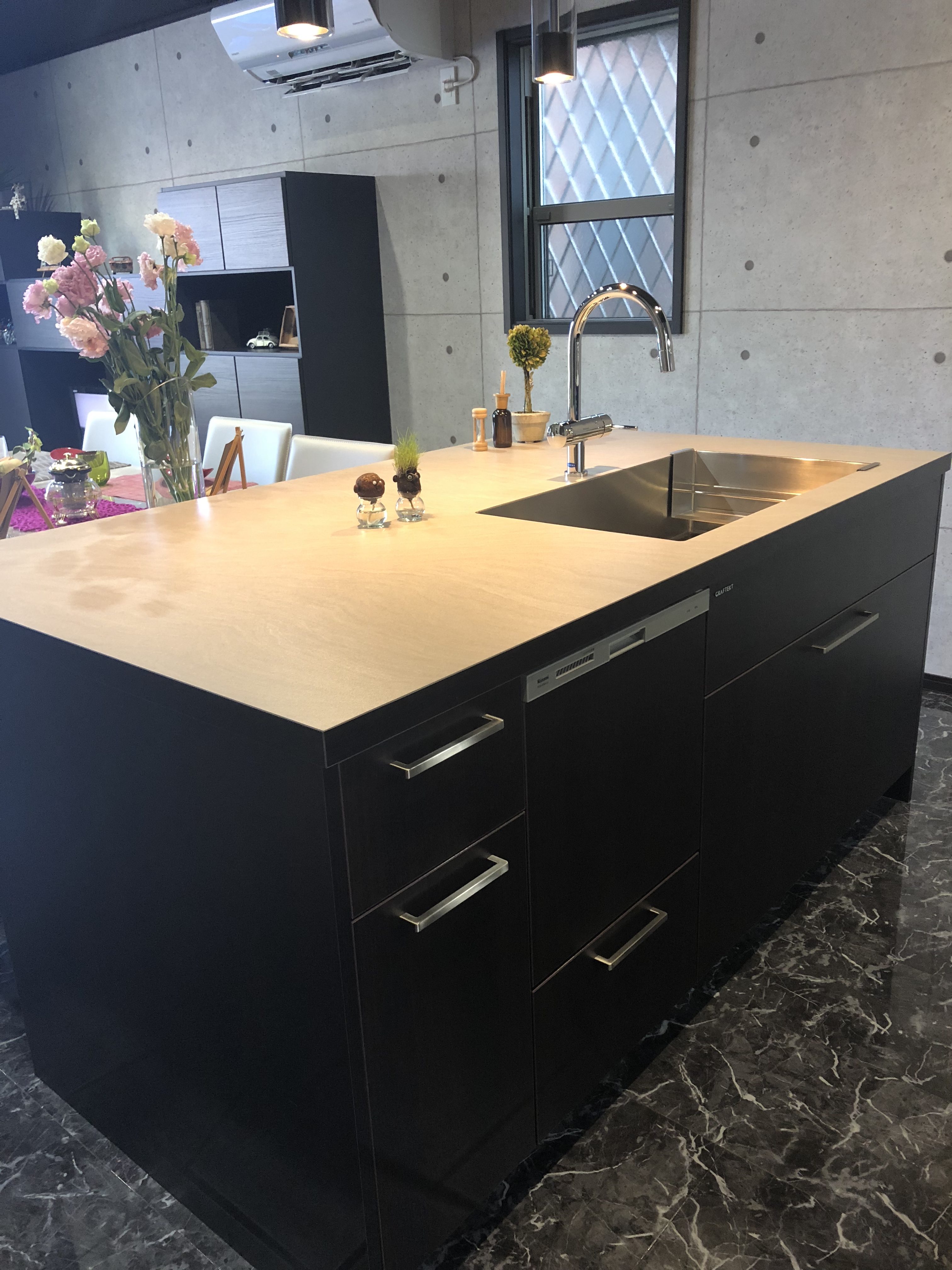 アイランドキッチンかつカウンタータイプになっているため、机としても使用できます。