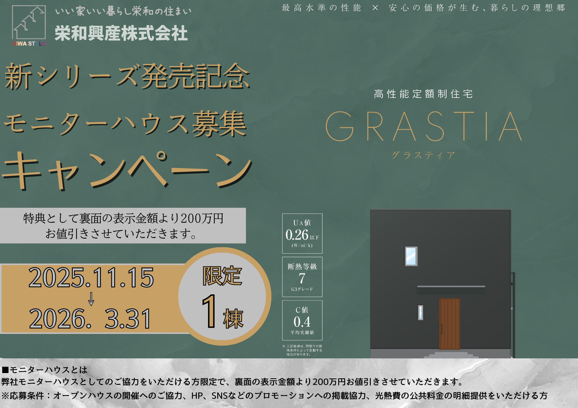 高性能定額制住宅”GRASTIA”モニターハウス募集!【限定1棟】