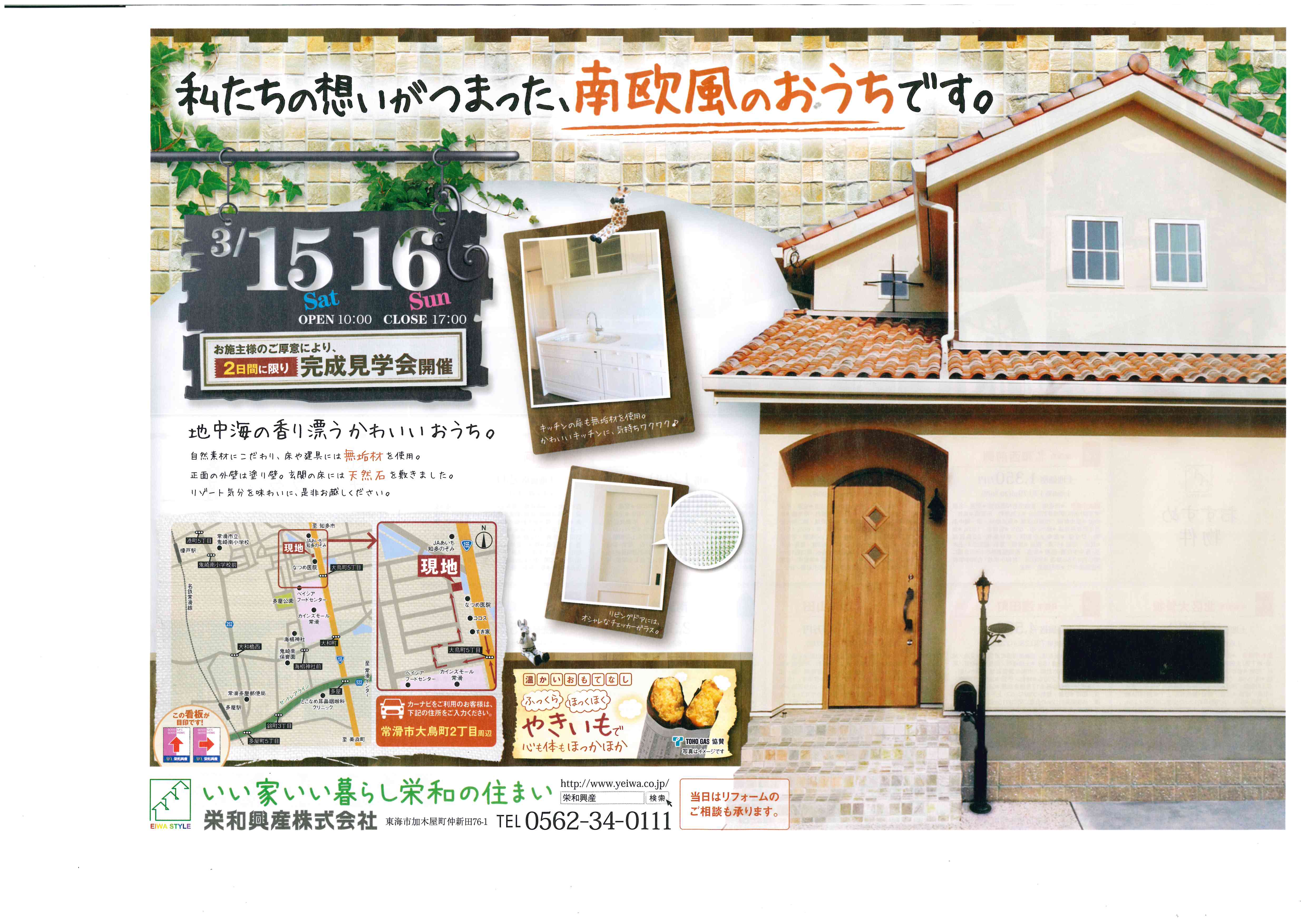 2014.03.14 12:57 『南欧風のおうち』 完成見学会! 3月15日(土)16日(日) 完成見学会 開催! ~『私たちの想いがつまった、南欧風のおうちです』~ 自然素材にこだわり、床や建具には無垢を使用しています。 キッチンも建具と同じ無垢材で、チェッカーガラスを使用した かわいらしいキッチンです♪ぜひご覧ください。 皆様のご来場をスタッフ一同、楽しみにお待ちしております♪ ツイート 前の記事へ 一覧に戻る 次の記事へ
