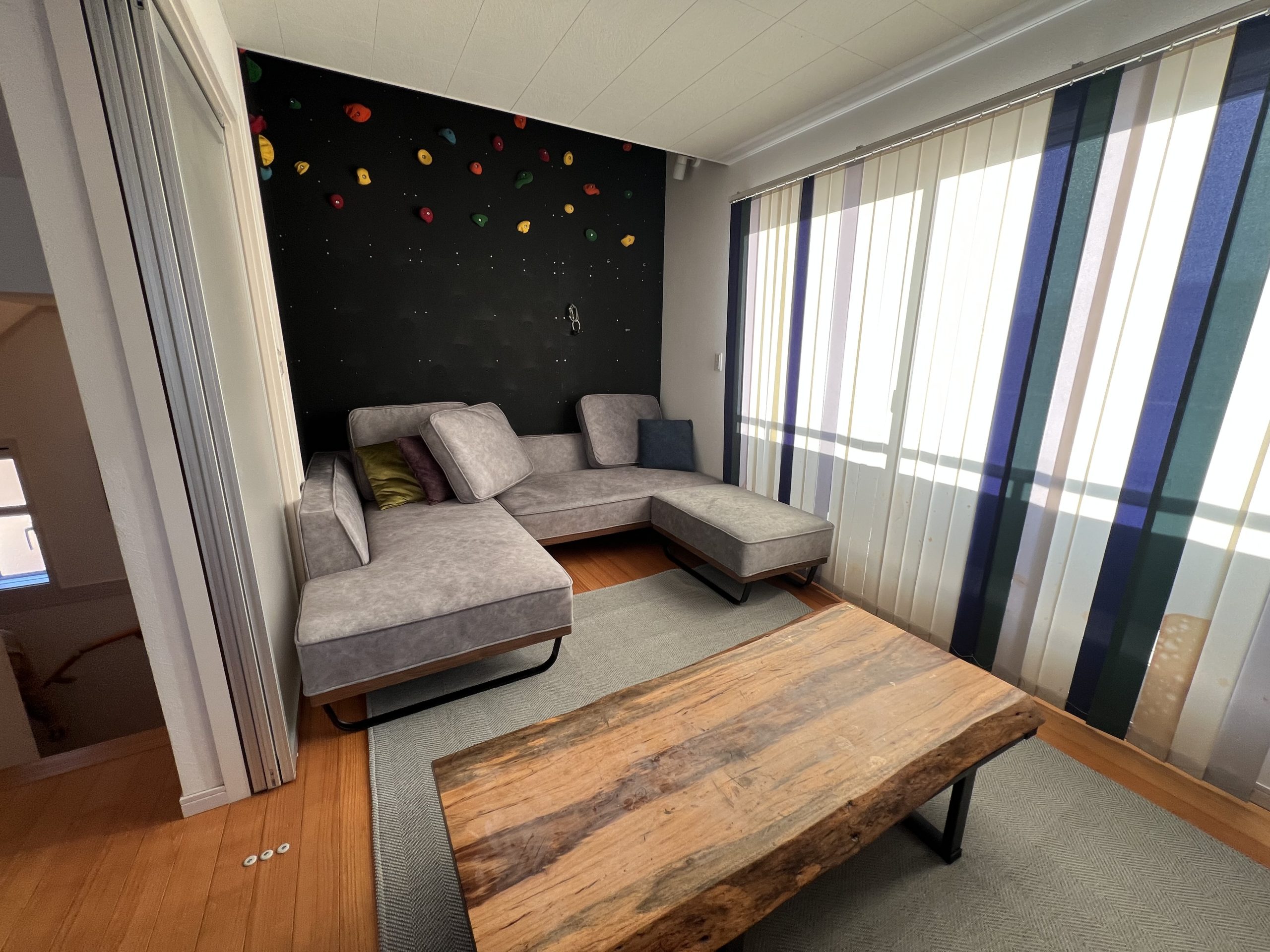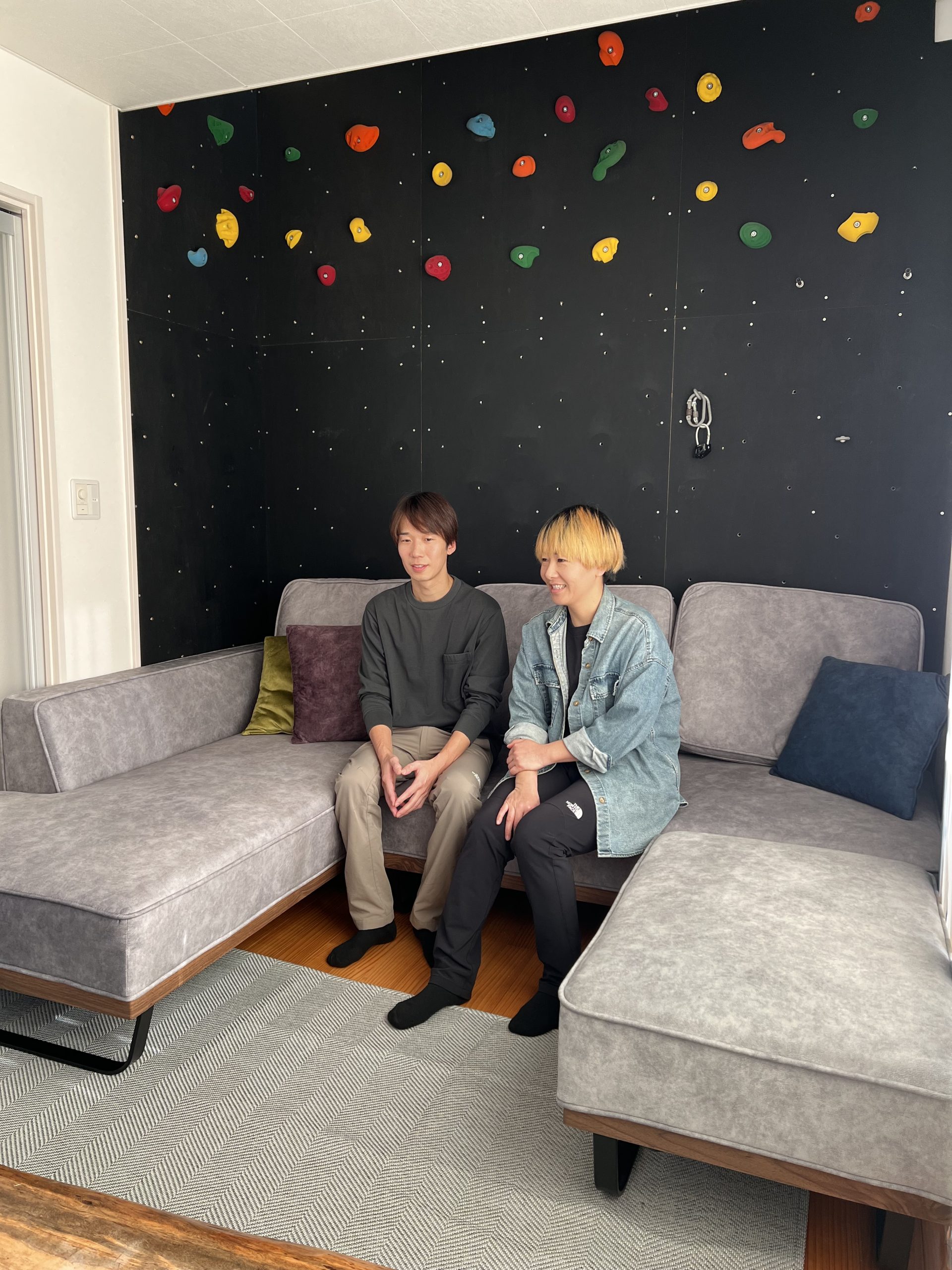 奥様: 子供たちにとっても、ボルダリングがあったり、かくれんぼする場所がたくさんあった りと、自慢の家のようです。友達が来ると「ここがいい!」と喜んでくれて、みんなで遊んで いる姿を見るのが幸せですね。