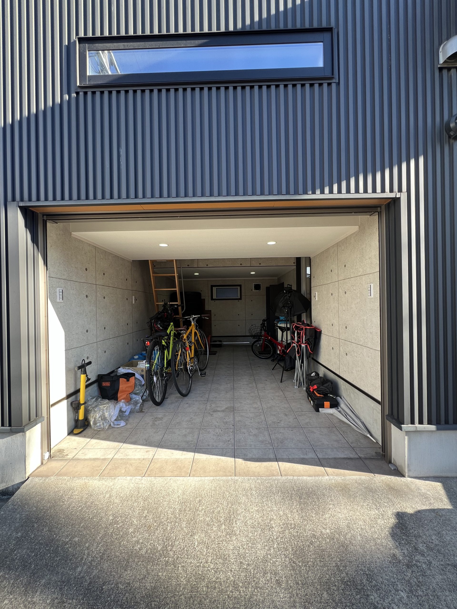 今は車を入れるというより、趣味の道具やBBQセット、子供のプールなどでパンパンですが(笑)、外に置きたくない物を全て収納できて重宝しています。